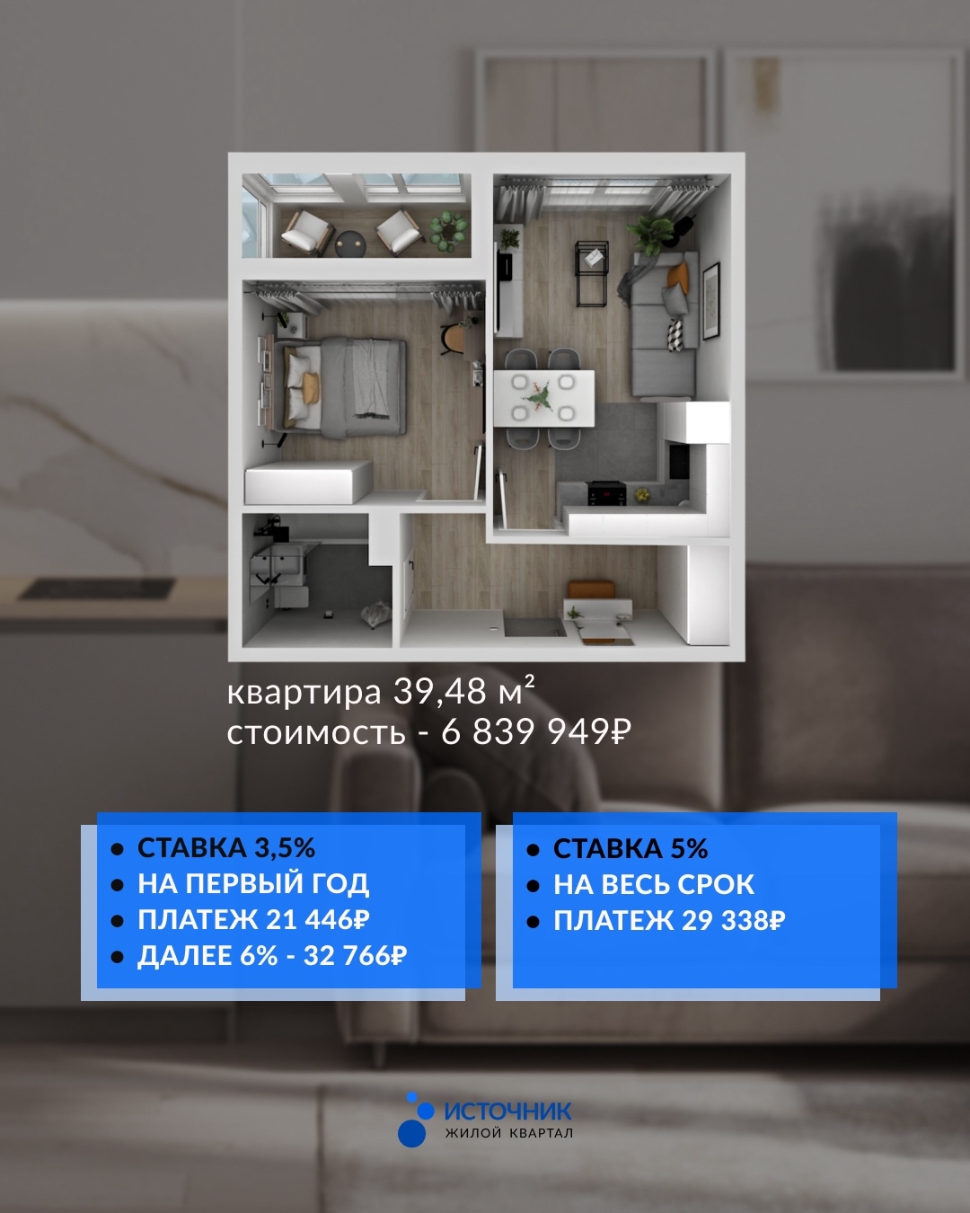 Первый год ставка 3,5% - платёж 21 446 ₽